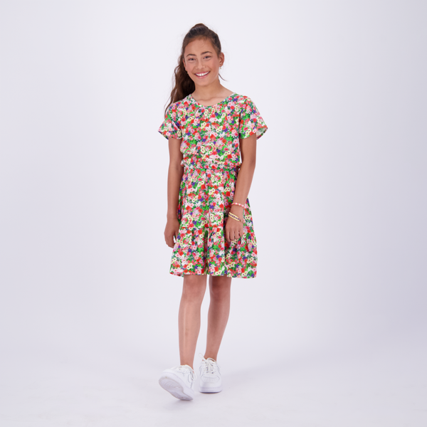 MIDI JURK MET ELASTISCHE TAILLE BAND EN BLOEMENPRINT