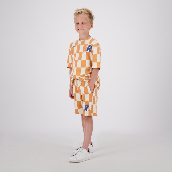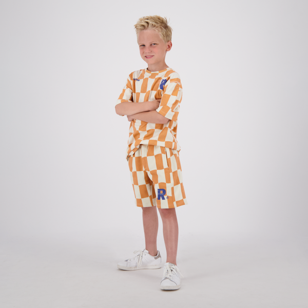 T-SHIRT MET KORTE MOUWEN EN BLOKJES PRINT ORANJE